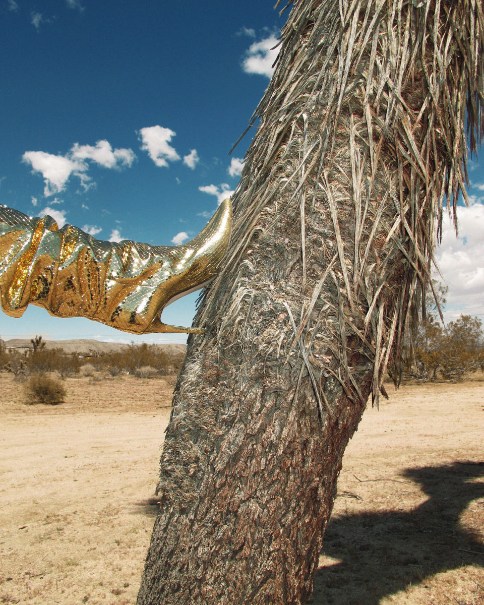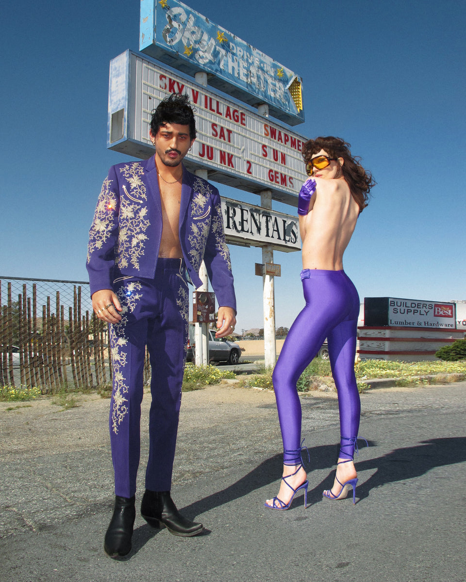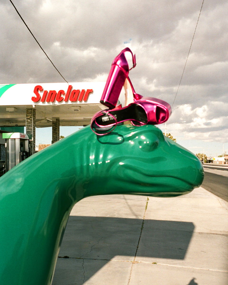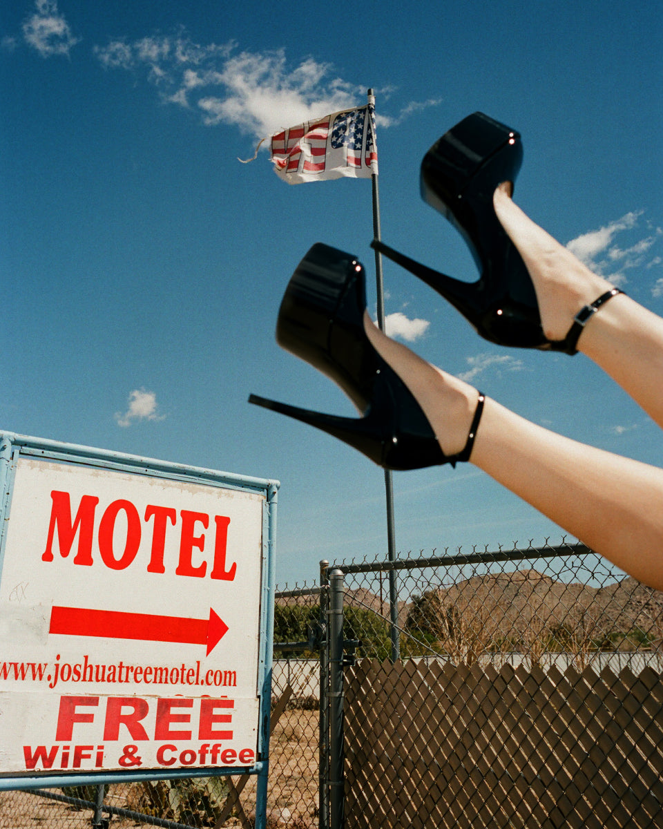 As part of the editorial series commissioned by Paris Texas to female photographers, Nadia Lee Cohen presents saturated portraits against a surreal landscape for Pre Fall 22. Documenting her trip with Charlie Denis and Stolen Nova through the sun-scorched California desert, the artist and photographer interprets the essence of femininity, seductive and daring, straddling strength and vulnerability.