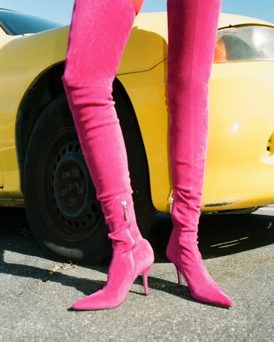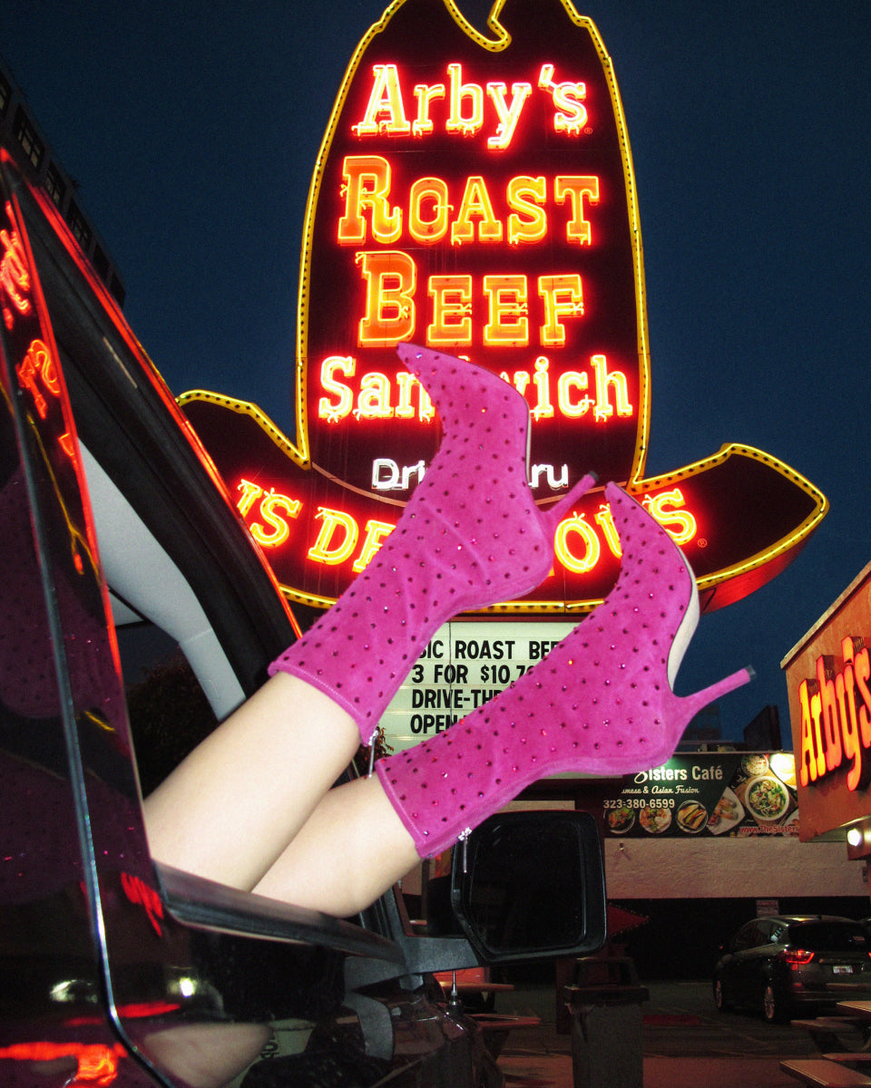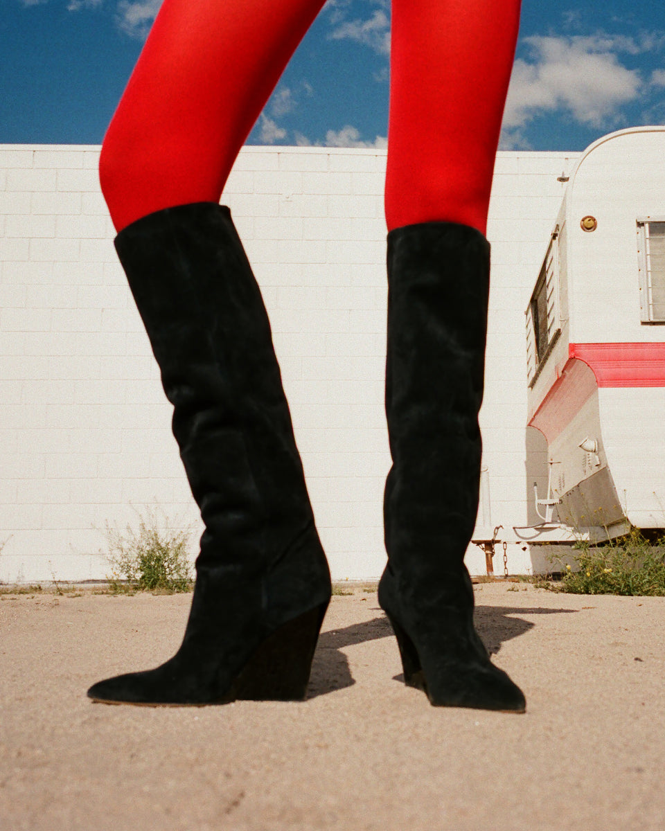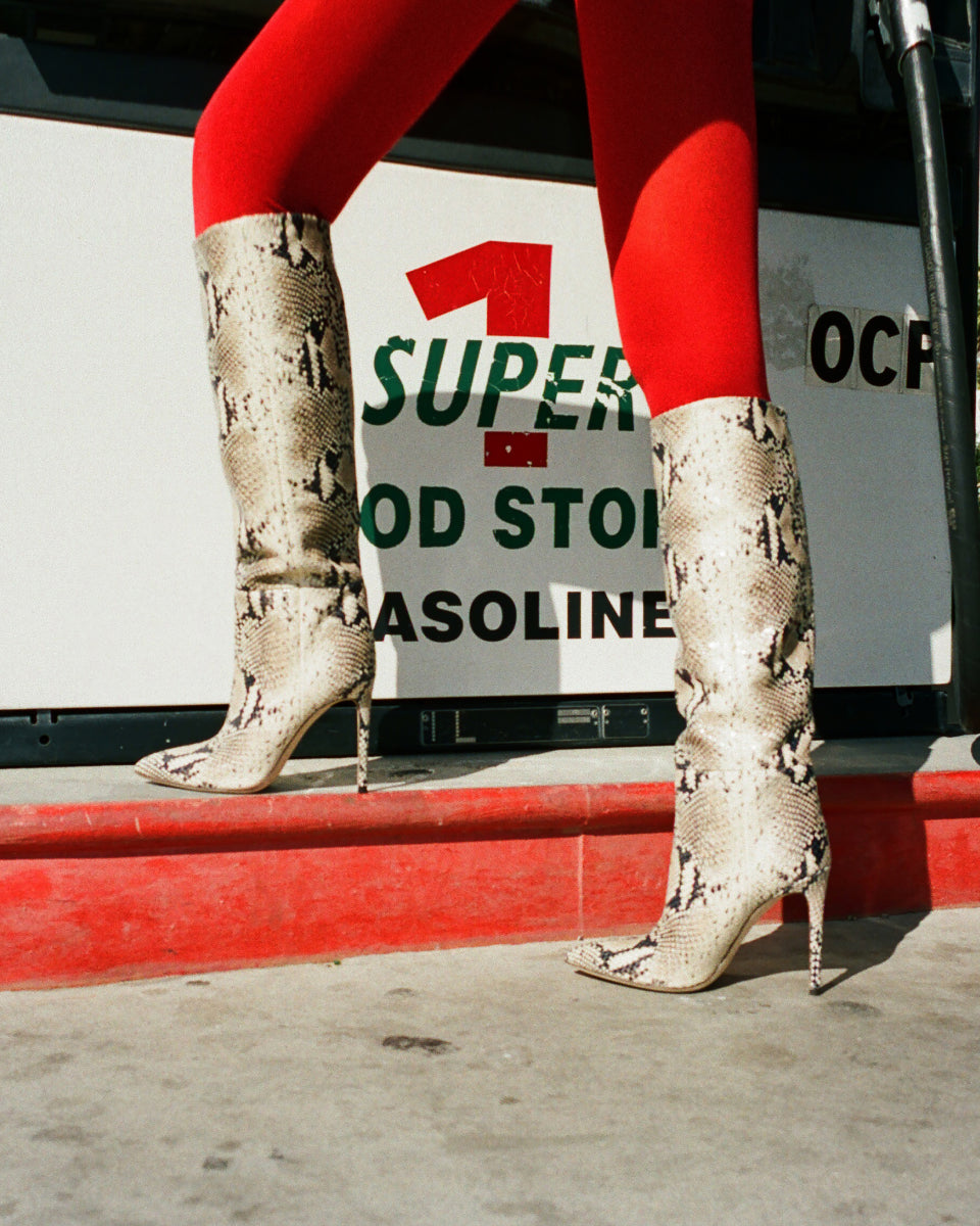 As part of the editorial series commissioned by Paris Texas to female photographers, Nadia Lee Cohen presents saturated portraits against a surreal landscape for Pre Fall 22. Documenting her trip with Charlie Denis and Stolen Nova through the sun-scorched California desert, the artist and photographer interprets the essence of femininity, seductive and daring, straddling strength and vulnerability.