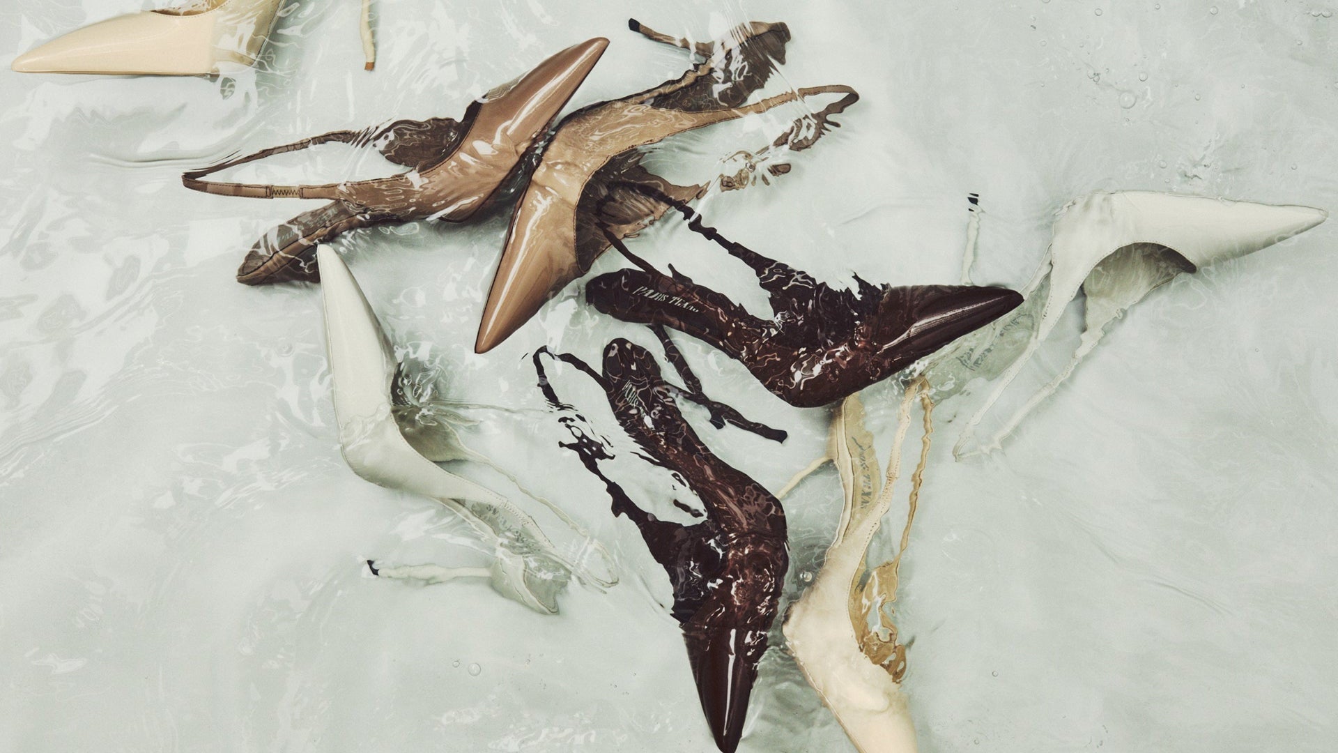 Lidia Underwater channels a daring vision of refined sophistication in the mules, ankle-strap sandals, slingbacks and pumps enriched with a delicate front strap, all in rich-hued patent leather.