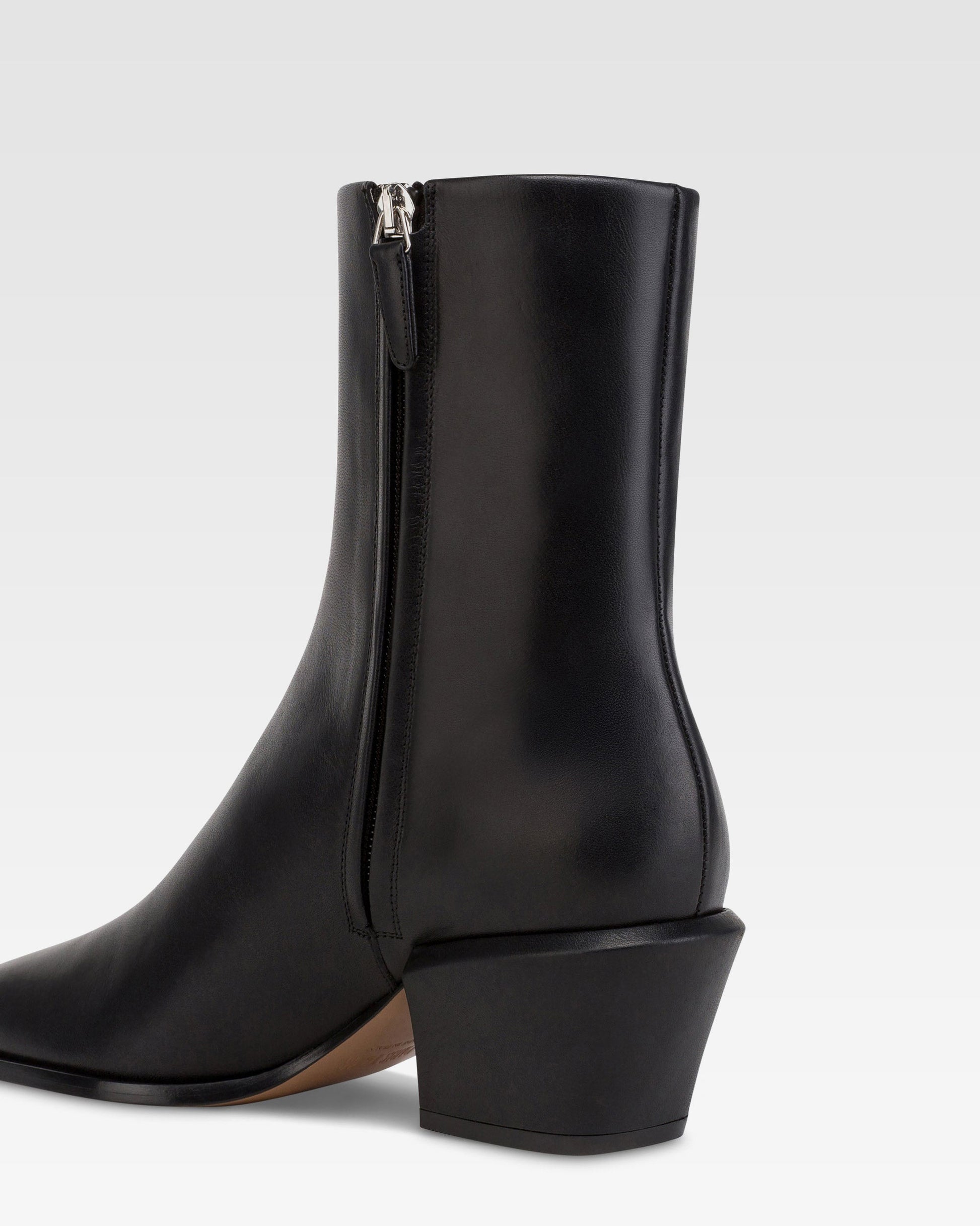 Ankle boots in black calf leather.